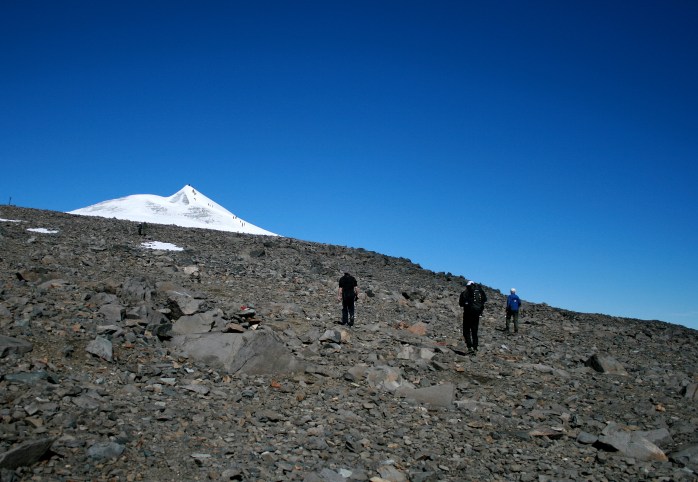 Kokonaisuudessaan melkoisen raskas reissu, mutta antoisa. Olosuhteet sattuivat meille parhaat mahdolliset. Pilvettömän sää ansiosta näkyvyys oli täydellinen. Lisäksi huippujäätikkö oli vielä sopivan lumikerroksen peitossa. Ei tarvittu jääkenkiä kiipeämiseen.