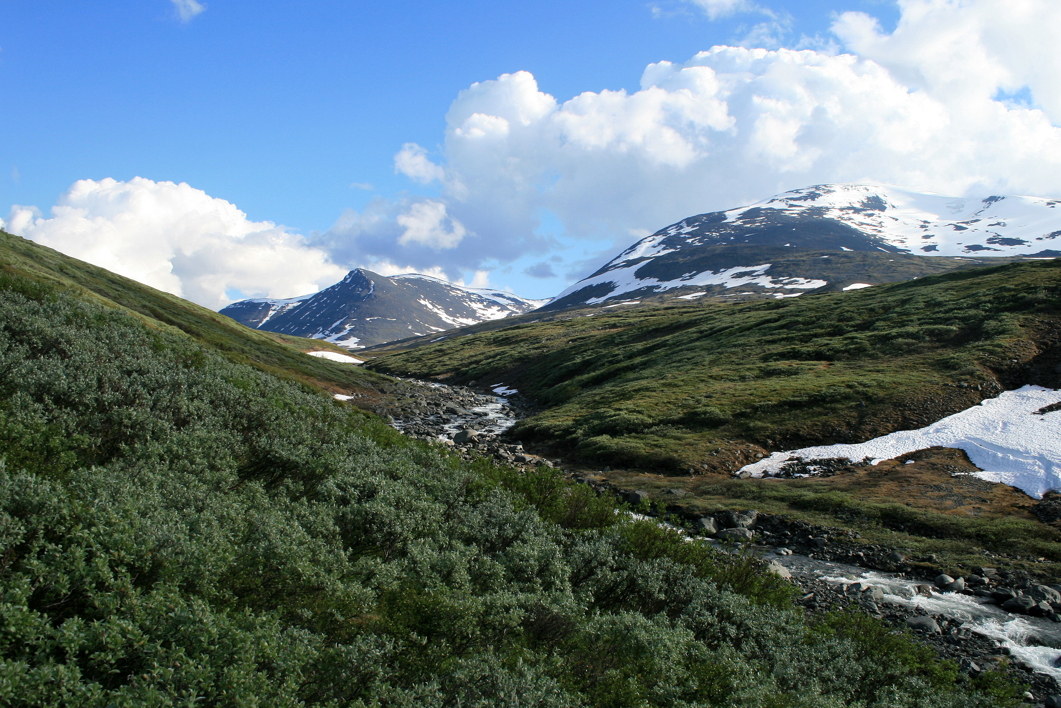 Toinen yö vietettiin aurinkoisella Nissonsnuohkin rinteellä. Telttailuun paikka oli erinomainen. Ainoastaan vesi oli hieman hakemisessa. Löytyihin sitä vettäkin pienen etsiskelyn jälkeen. Kolmas päivä edettiin joutuisasti alamäkeen Nissonjohkaa seuraillen kohti Abiskojåkkaa. Loppumatka käveltiin Kungsledeniä pitkin Abiskoon.