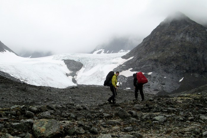 Tämä yö nukuttiin paikassa, jossa oli telttailtu joitain vuosia aikaisemmin Kebnekaisen huiputusreissulla. Täältä otettin suunta kohti Tarfalaa.