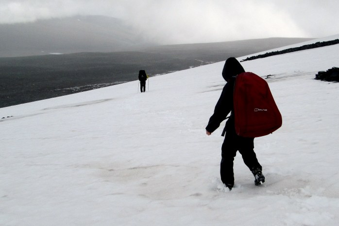 Pikaisen ruokailun jälkeen lähdettiin koilliseen Kekkonen-toppenin pohjoispuolitse kohti Cievrralahkua. Nousua noin 400 metriä ja vieläpä jyrkkää. Korkeimmillaan noustiin noin 1600 metriin.