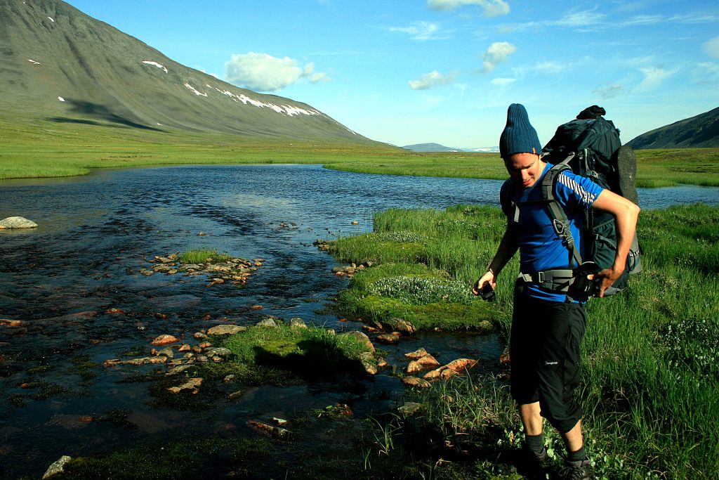 Liikkeelle lähdettiin Abiskosta Kungsledeniä aluksi seuraillen. Noin kolmen kilometrin jälkeen poikettiin reitiltä suuntaan Ballinvaggi tavoitteena Ballinjohkan varrella sijaitseva ”tältlägret”. Tällä paikalla oli jäänteitä vanhasta leiristä. Kodan rauniot ja ränsistynyt lipputankokin oli vielä pystyssä.
