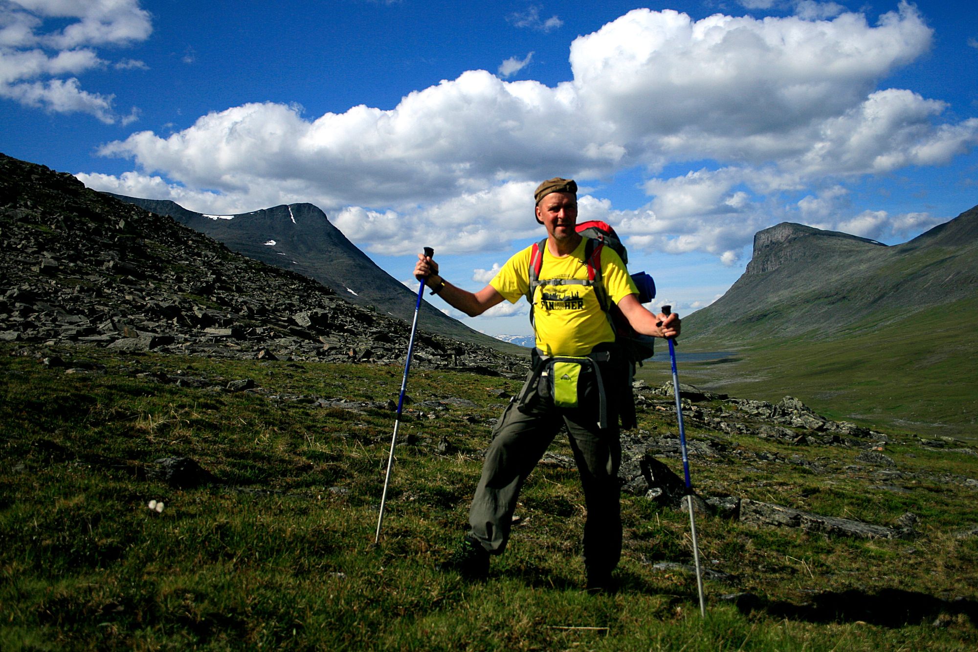 Järveltä laskeuduttiin alas kohti Nissonvaggia. Laaksoa kävellen käännyttiin vähitellen itään päin ja edelleen Lapporttenin suuntaan. Sää jatkui edelleen helteisenä. Milteipä liian kuumana vaeltamista ajatellen.
